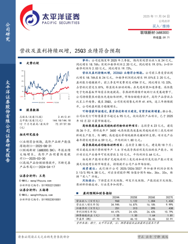 【太平洋证券】【202511】营收及盈利持续双增,25Q3业绩符合预期-4页 公司研究