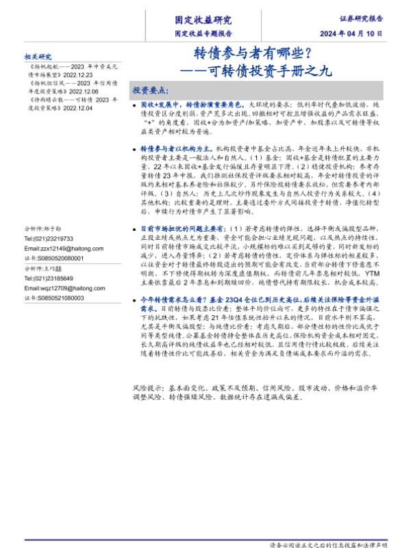 【海通证券】【20240410】转债参与者有哪些?——可转债投资手册之九-14页 行业研究