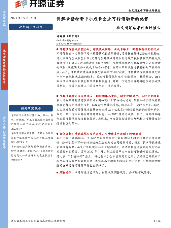 【开源证券】【20230519】详解专精特新中小成长企业可转债融资的优势-16页 行业研究
