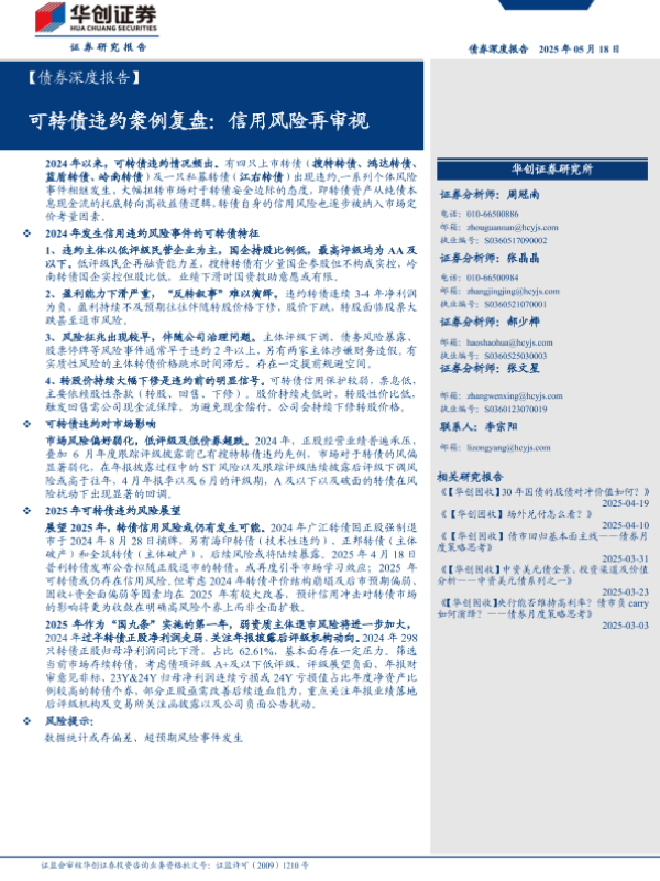 【华创证券】【20250518】可转债违约案例复盘:信用风险再审视-26页 证券期货研究报告