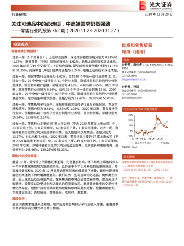 【光大证券】【20201128】关注可选品中的必选项,中高端需求仍然强劲-11页 行业研究