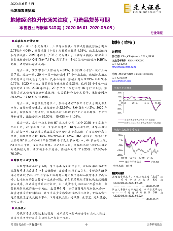 【光大证券】【20200606】零售行业周报第340期:地摊经济拉升市场关注度,可选品复苏可期-12页 行业研究