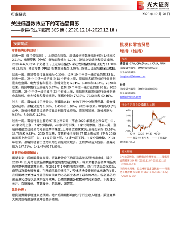 【光大证券】【20201220】零售行业周报第365期:关注低基数效应下的可选品复苏-10页 行业研究