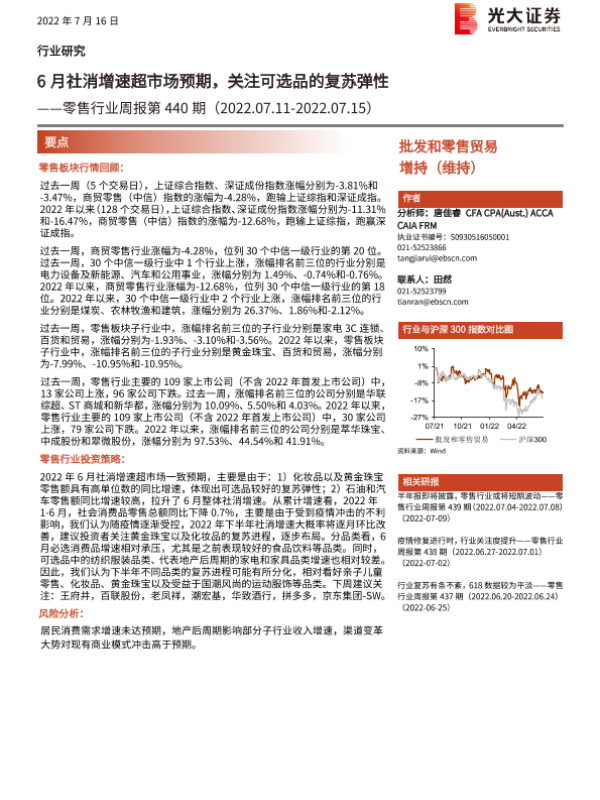 【光大证券】【20220716】6月社消增速超市场预期,关注可选品的复苏弹性-8页 行业研究