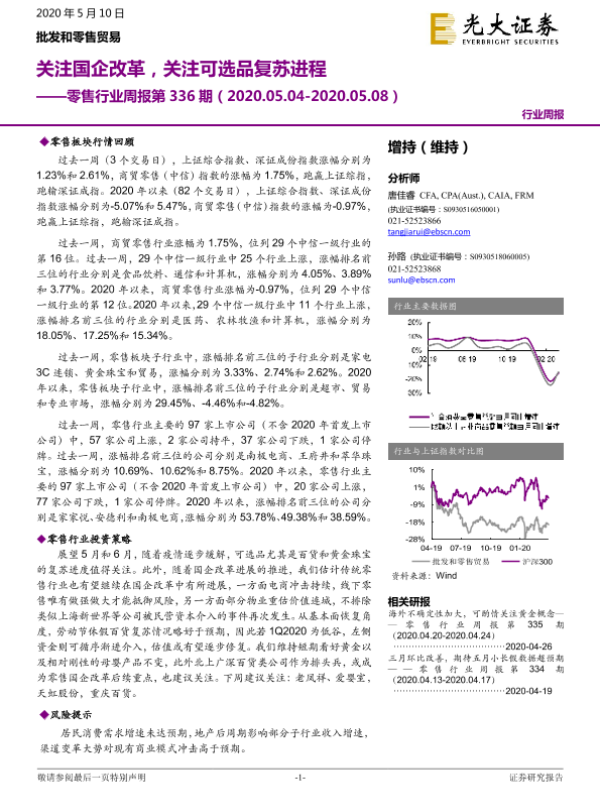 【光大证券】【20200510】零售行业周报第336期:关注国企改革,关注可选品复苏进程-10页 行业研究