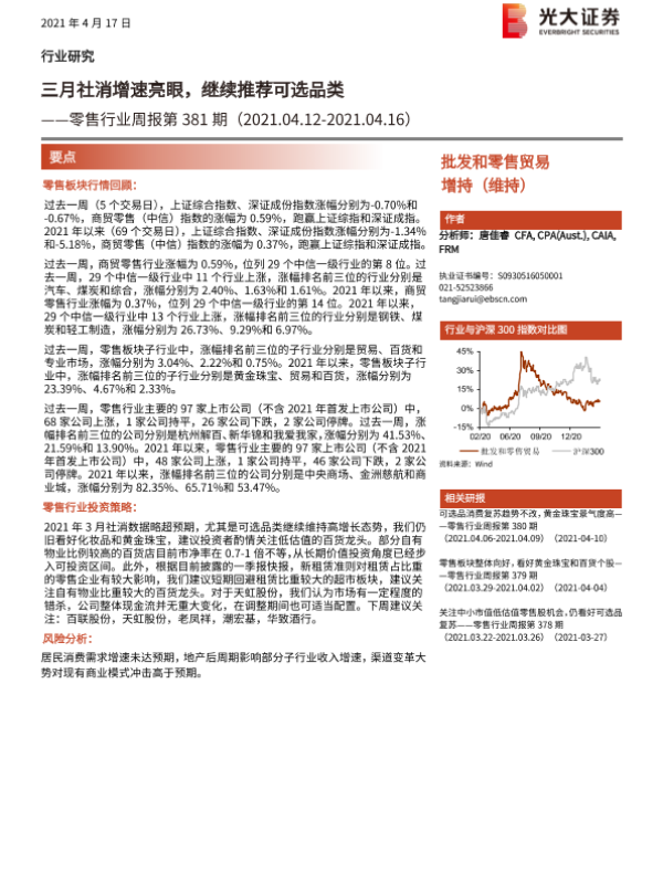 【光大证券】【20210417】三月社消增速亮眼,继续推荐可选品类-8页 行业研究