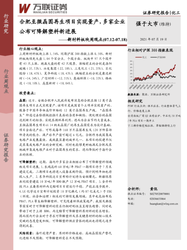 【万联证券】【20210719】20210719-万联证券-新材料板块周观点:合肥至微晶圆再生项目实现量产,多家企业公布可降解塑料新进展-10页 行业研究