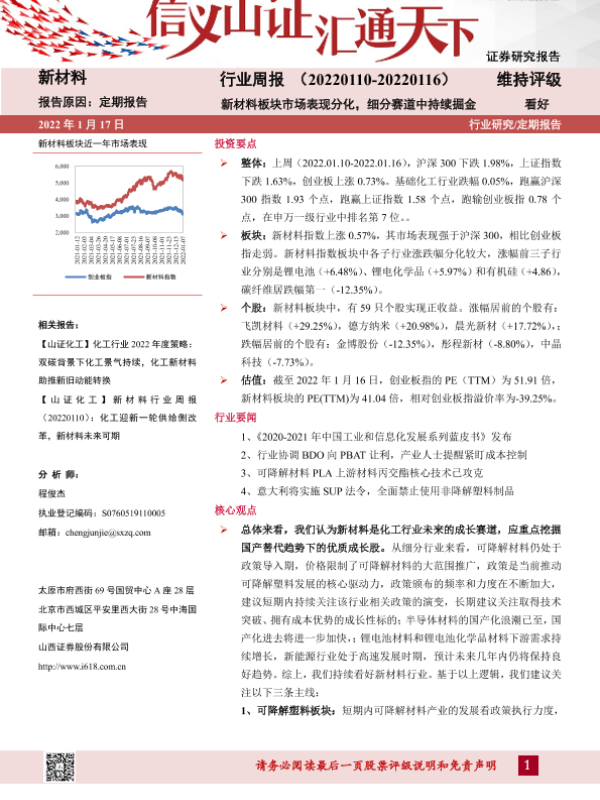 【山西证券】【20220117】20220117-山西证券-新材料行业周报:新材料板块市场表现分化,细分赛道中持续掘金-13页 行业研究
