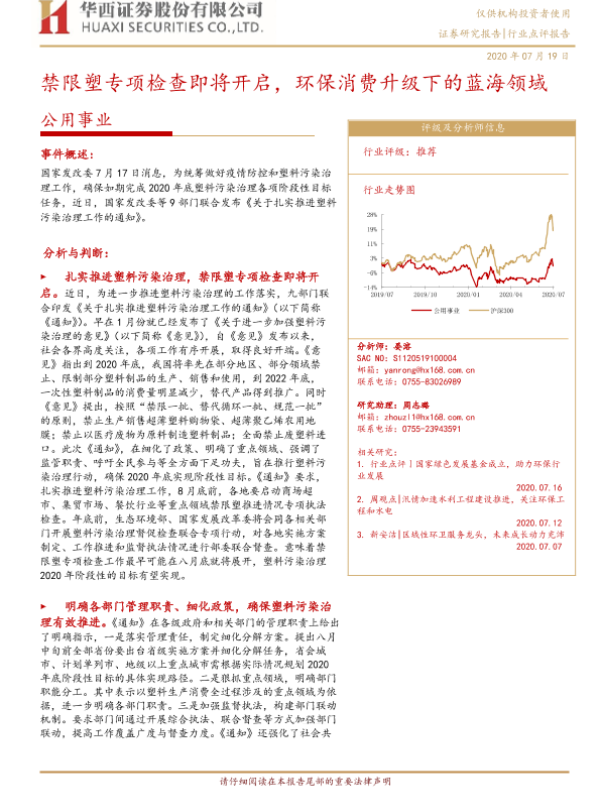 【华西证券】【20200719】禁限塑专项检查即将开启,环保消费升级下的蓝海领域-4页 行业研究