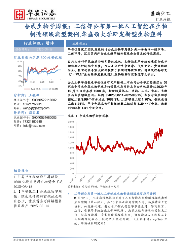 【华安证券】【20250818】合成生物学周报:工信部公布第一批人工智能在生物制造领域典型案例-华盛顿大学研发新型生物塑料-15页 证券期货研究报告