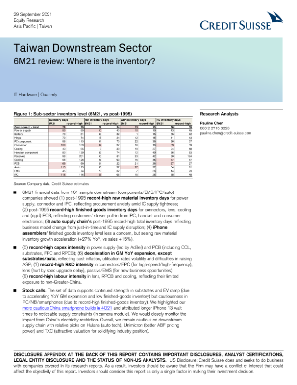 【Credit Suisse】【20210929】瑞信-亚太地区IT硬件行业-台湾地区下游行业:库存在哪里?-22页 行业研究