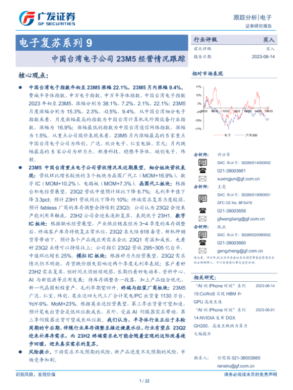 【广发证券】【20230614】20230614-广发证券-电子复苏系列9:中国台湾电子公司23M5经营情况跟踪-22页 行业研究
