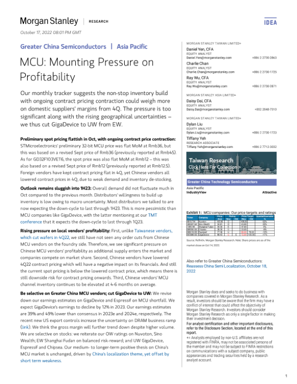 【Morgan Stanley】【20221017】Greater China Semiconductors MCU Mounting Pressure on Profitability-21页 行业研究