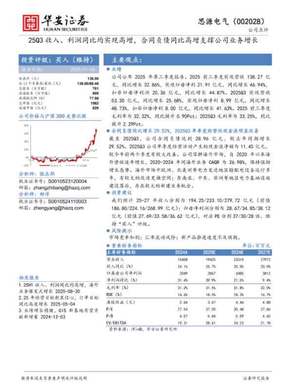 【华安证券】【202511】25Q3收入、利润同比均实现高增,合同负债同比高增支撑公司业务增长-3页 证券期货研究报告