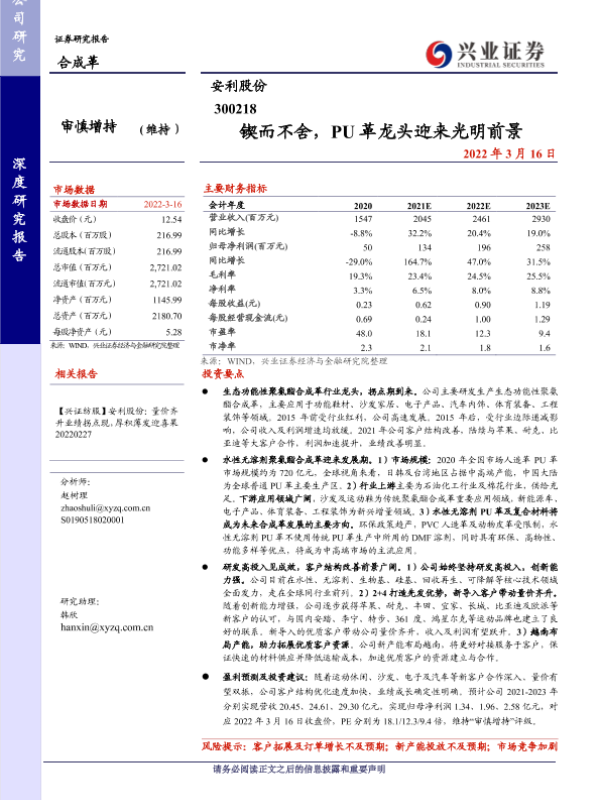 【兴业证券】【20220316】锲而不舍,PU革龙头迎来光明前景-26页 行业研究