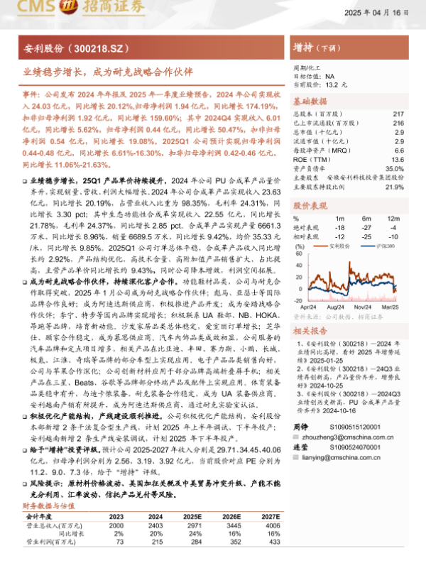 【海通证券】【20250416】安利股份业绩稳步增长,成为耐克战略合作伙伴-18页 公司研究