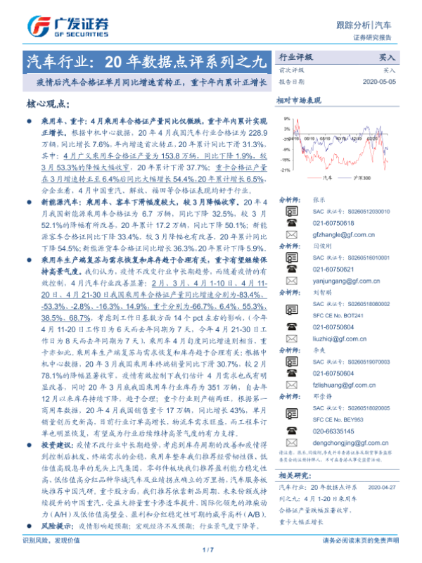 【广发证券】【20200505】20年数据点评系列之九:疫情后汽车合格证单月同比增速首转正,重卡年内累计正增长-7页 行业研究