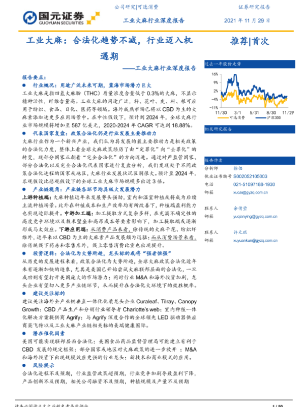 【国元证券】【20211129】工业大麻行业深度:工业大麻,合法化趋势不减,行业迈入机遇期-50页 行业研究