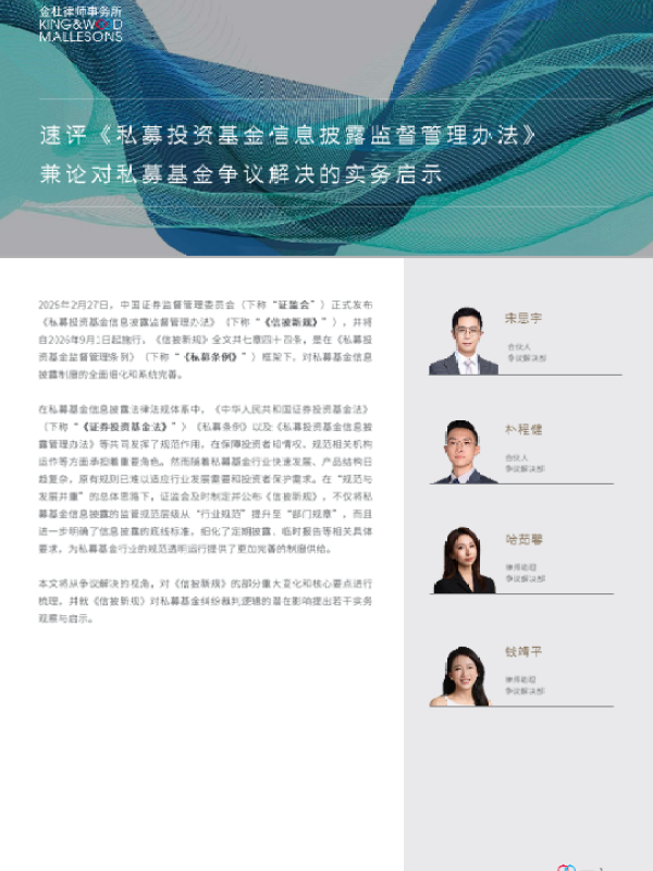 【金杜律师事务所】【202602】速评《私募投资基金信息披露监督管理办法》兼论对私募基金争议解决的实务启示-4页 政策文件