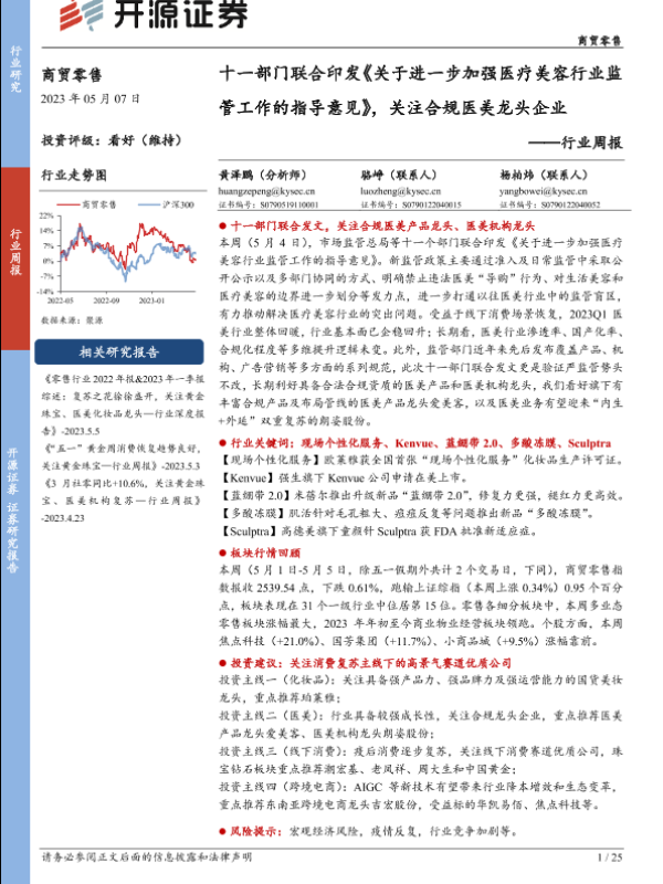 【开源证券】【20230507】商贸零售行业周报:十一部门联合印发《关于进一步加强医疗美容行业监管工作的指导意见》,关注合规医美龙头企业-25页 行业研究