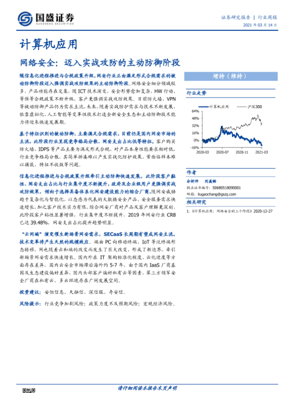【国盛证券】【20210314】20210314-国盛证券-计算机应用行业周报:网络安全:迈入实战攻防的主动防御阶段-15页 行业研究