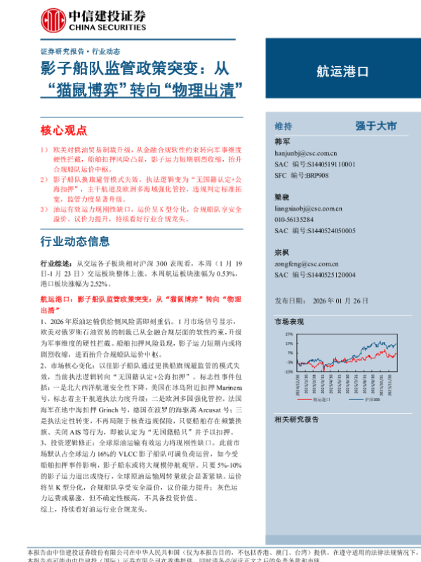 【中信建投证券】【202601】航运港口行业影子船队监管政策突变:从“猫鼠博弈”转向“物理出清”-28页 证券期货研究报告