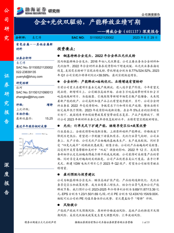 【渤海证券】【20230629】合金+光伏双驱动,产能释放业绩可期-35页 行业研究