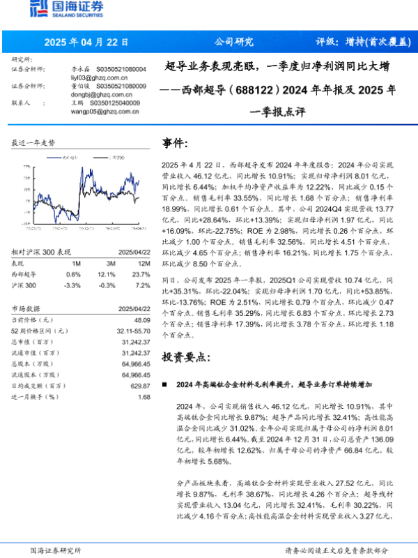 【国海证券】【20250422】西部超导2024年年报及2025年一季报点评-11页 公司研究