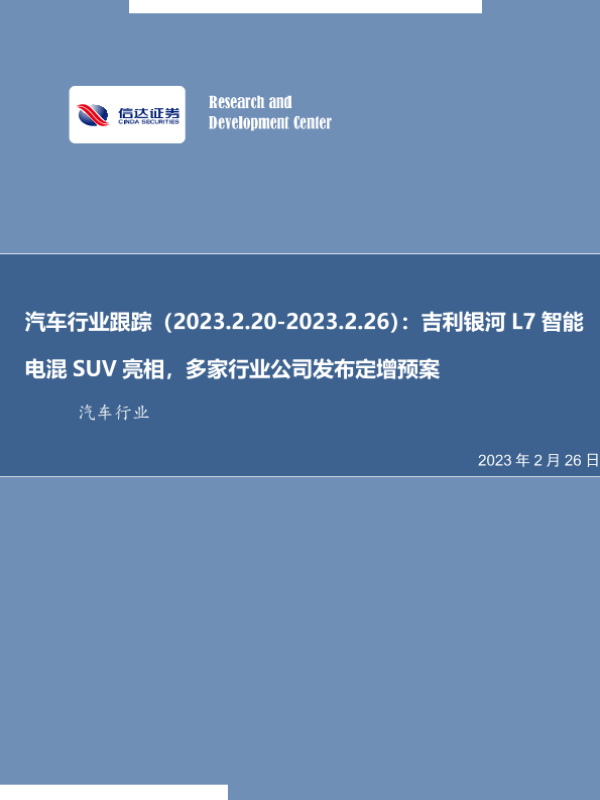 【信达证券】【20230226】汽车行业跟踪(2023.2.20-2023.2.26):吉利银河L7智能电混SUV亮相,多家行业公司发布定增预案-23页 行业研究