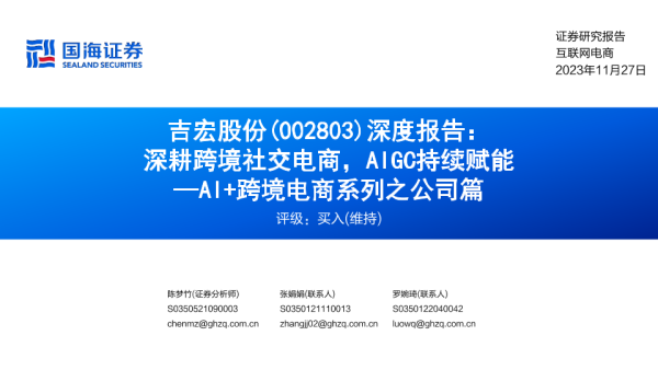 【国海证券】【20231127】深耕跨境社交电商,AIGC持续赋能—AI+跨境电商系列之公司篇-44页 行业研究