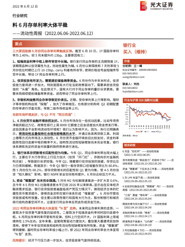 【光大证券】【20220612】银行业流动性周报:料6月存单利率大体平稳-10页 行业研究