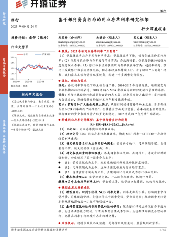 【开源证券】【20230924】银行业深度报告:基于银行资负行为的同业存单利率研究框架-52页 行业研究