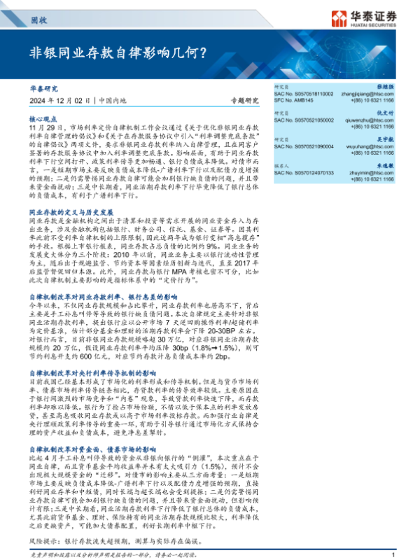 【华泰证券】【20241202】固收专题研究:非银同业存款自律影响几何?-14页 行业研究