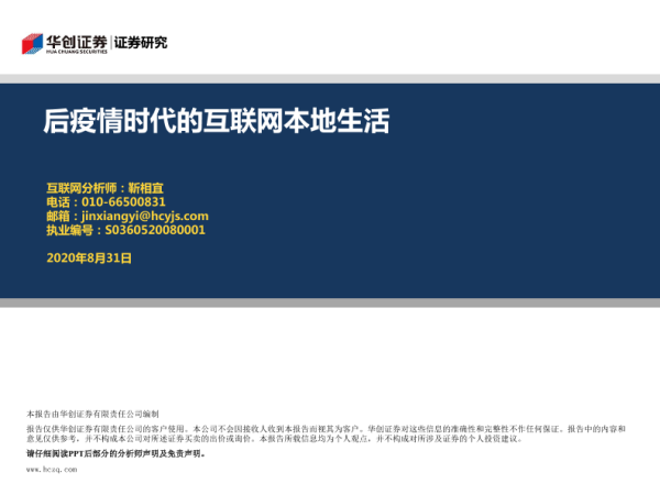 【华创证券】【20200831】后疫情时代的互联网本地生活-26页 行业研究
