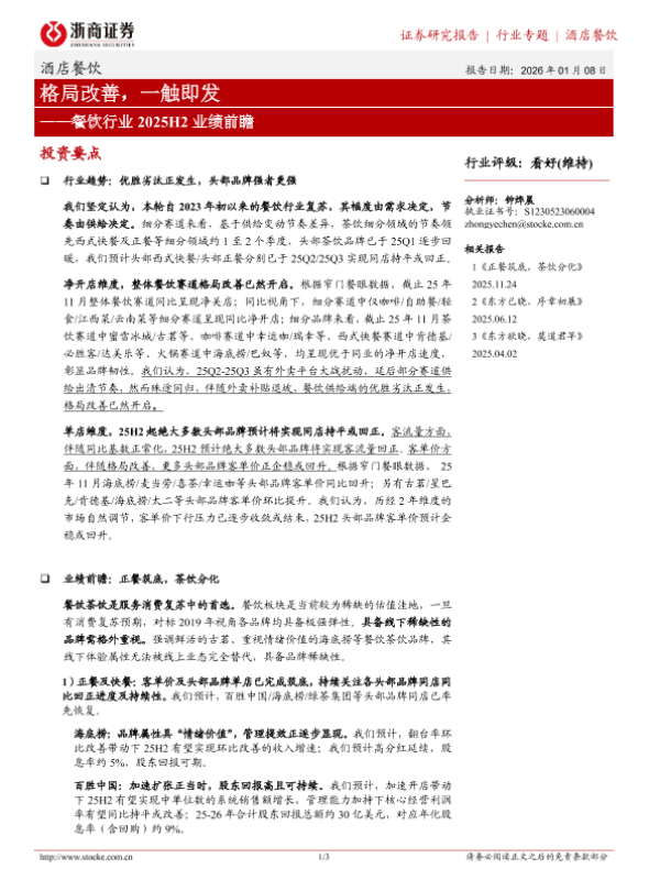【浙商证券】【2025】格局改善,一触即发——餐饮行业 2025H2业绩前瞻-3页 证券期货研究报告