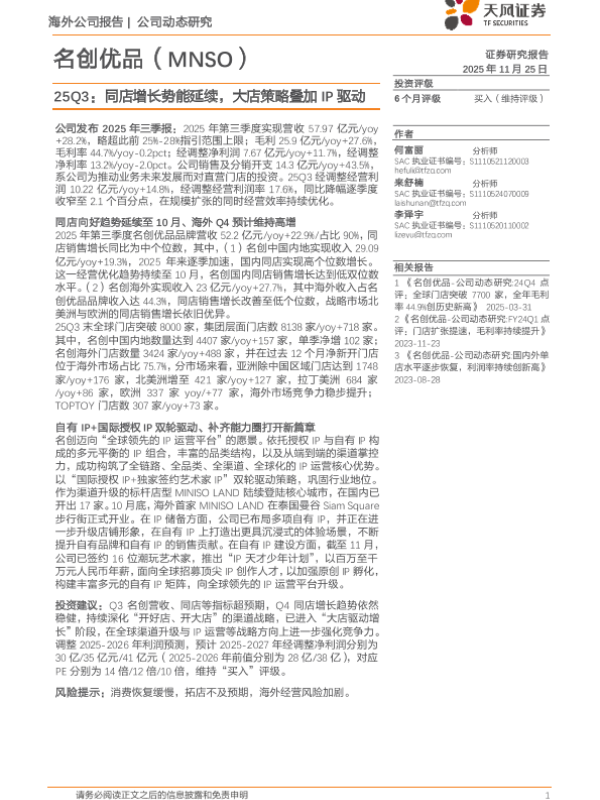 【群益证券 ( 香港 ) 有限公司】【202512】名创优品(09896.HK) BUY买进-3页 证券期货研究报告