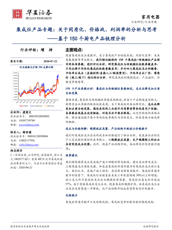 【华安证券】【20200722】家用电器:集成灶产品专题:关于同质化、价格战、利润率的分析与思考-基于150个厨电产品梳理分析-20页 行业研究