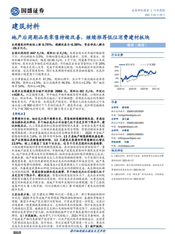 【国盛证券】【20210124】建筑材料行业周报:地产后周期品类零售持续改善,继续推荐低位消费建材板块-22页 行业研究