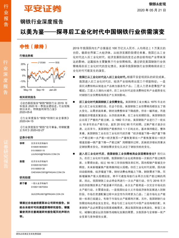 【平安证券】【20200521】20200521-平安证券-钢铁行业深度报告:以美为鉴——探寻后工业化时代中国钢铁行业供需演变-21页 行业研究