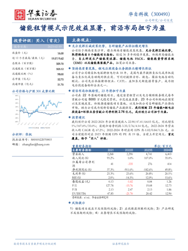 【华安证券】【20230219】储能租赁模式示范效益显著,前沿布局扭亏为盈-26页 行业研究