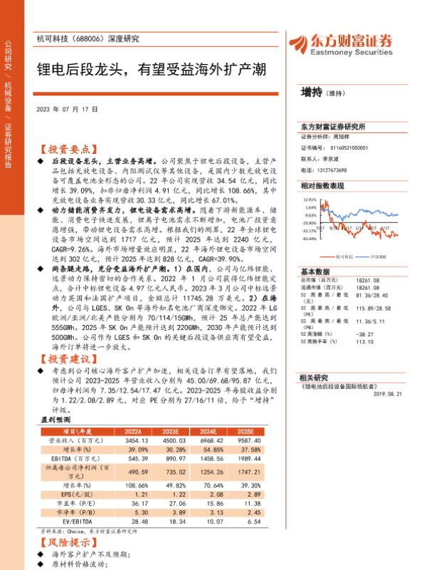 【东方财富证券】【20230717】20230717-东方财富证券-杭可科技-688006.SH-深度研究:锂电后段龙头,有望受益海外扩产潮-32页 行业研究
