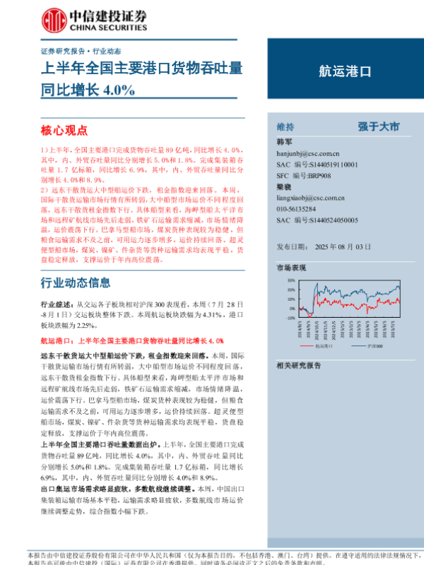 【中信建投证券】【202508】航运港口行业动态:上半年全国主要港口货物吞吐量同比增长4.0%-21页 证券期货研究报告