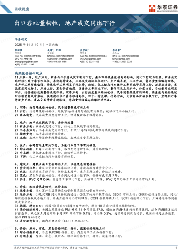 【华泰证券】【202511】固收视角:出口吞吐量韧性,地产成交同比下行-12页 证券期货研究报告