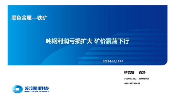 【宏源期货】【20231023】黑色金属_铁矿:吨钢利润亏损扩大,矿价震荡下行-29页 行业研究