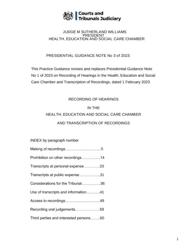 【JUDGE M SUTHERLAND WILLIAMS】【20231214】HESC 中的听证会录音和录音转录-10页 指南