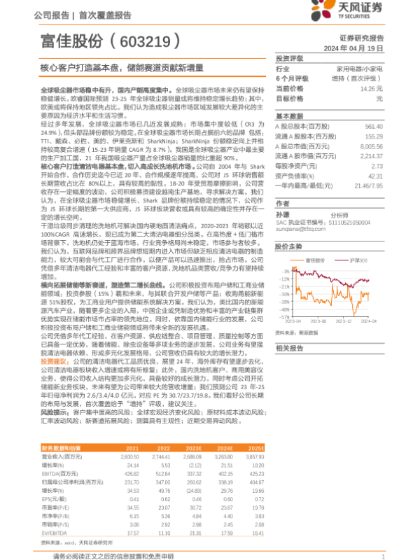 【天风证券】【20240419】富佳股份-核心客户打造基本盘,储能赛道贡献新增量-25页 行业研究