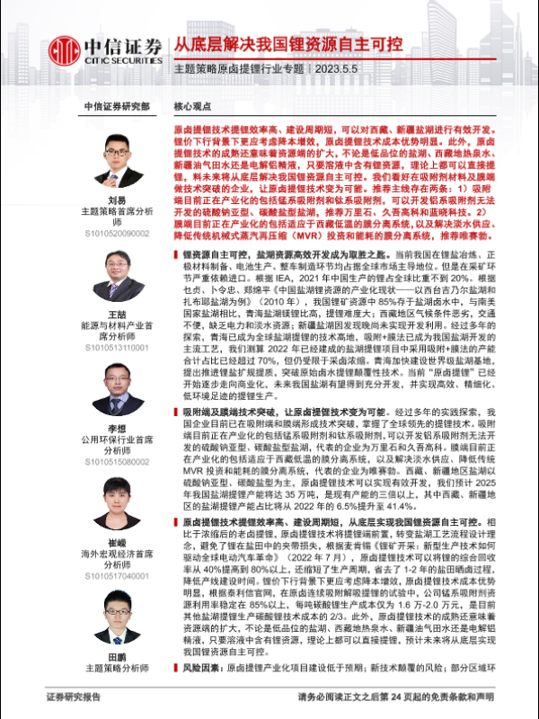 【中信证券】【20230505】主题策略原卤提锂行业专题:从底层解决我国锂资源自主可控-25页 行业研究