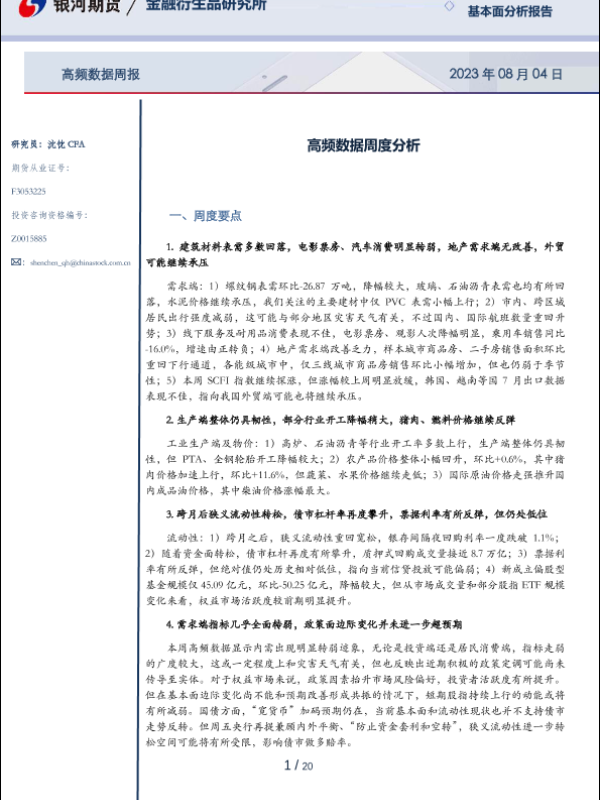 【银河期货】【20230804】高频数据周度分析-20230804-20页 行业研究
