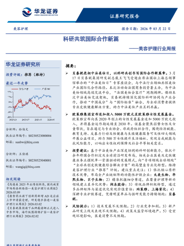 【华龙证券】【202603】科研共筑国际合作新篇——美容护理行业周报-10页 证券期货研究报告