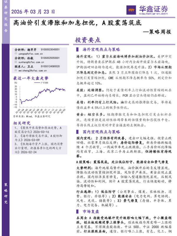 【华鑫证券】【202603】高油价引发滞胀和加息担忧,A股震荡筑底-25页 证券期货研究报告